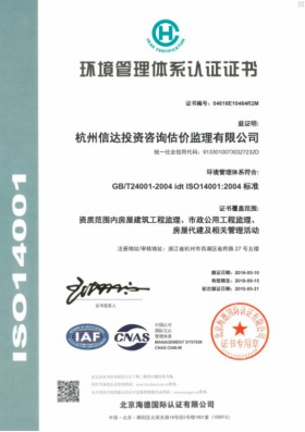 環境管理體系認證證書
