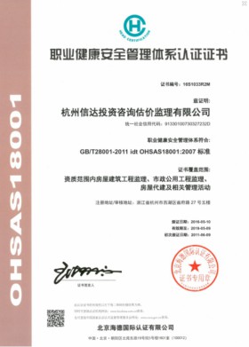 職業健康安全管理體系認證證書
